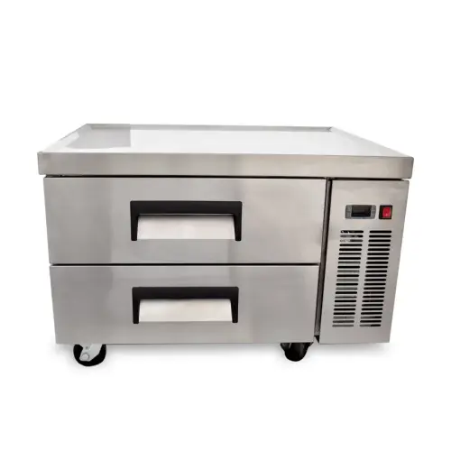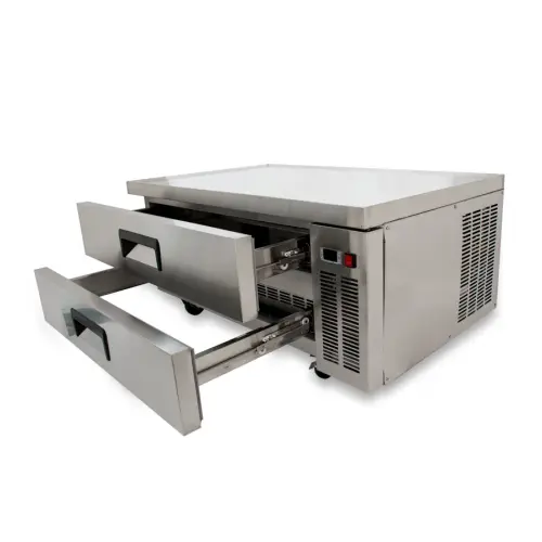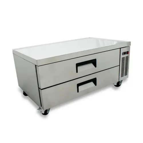 The Universal UCB52 52” 2 drawer refrigerated chef base provides efficient and convenient production in your commercial kitchen. Chef base refrigerators are a convenient place to hold and store foods exactly where they are needed. This refrigerated chef base is a solution for any productive food service business interested in increasing efficiency. Chefs often use refrigerated chef bases to place countertop cooking equipment on top. The chef base refrigerator is used to store ingredients and achieve success. This model chef base is sleek, functional, and modern in design. The Universal refrigerated chef base is a great way to keep your most frequently used ingredients close by.