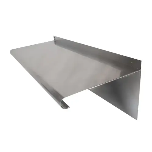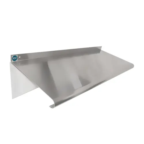This commercial wall shelf includes 18-gauge 430 stainless steel construction with #4 finish. The matte finish eliminates glossy sheen.