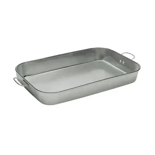 The Update International ABP-1826H - Aluminum Bake Pan - 3.5" x 26" x 18" is an important item to keep in every restaurant establishment that requires various tools for cooking poultry or roasts. This Bake Pan may be used to bake cakes, breads or desserts as well. Additionally its heavy-duty aluminum construction means that even without straps or lugs the roast pan won't bend or warp under normal use. This roast pan also features drop down handles for easier lifting and transportation.