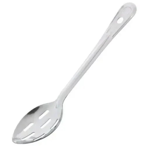 The Update International BSOT-11HD - Heavy Duty - Slotted Basting Spoon - 0.05" x 2.75" x 11" is an important item to keep in every restaurant establishment that serves many purposes in the kitchen. This basting spoon isconstructed of 15-gauge heavy-duty 18/8 stainless steel and its slotted bowl surface allows food to be easily lifted from the pot without picking up excess liquid. The handle includes a notch that will prevent the spoon from slipping into the dish.