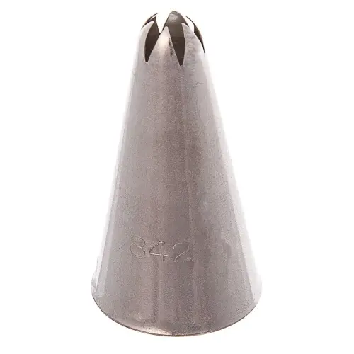 The Update International CDT-142CS - Stainless Steel - Cake Decorating Tubes - 1.9" x 1" x 1" is an important item to keep in every restaurant establishment that decorates cakes with beautiful designs. This Cake Decorating Tube helps to create a thinner star or flower pattern compared to their open star. Great for making the detail of smaller floral patterns come to life. Cake decorating tubes are great for cakes and filling of pastry. Available in closed star design.