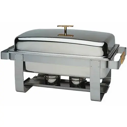 Update International GC-7 - 8 Qt - Stainless Steel Rectangular Gold-Accented Grandeur Chafer