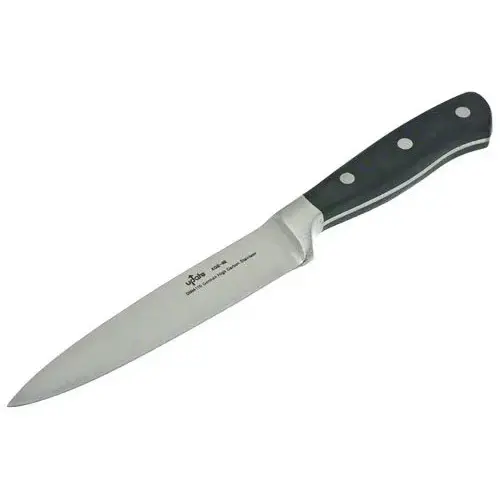 The Update International KGE-02 - Stainless Steel - Forged Utility Knife - 0.25" x 1" x 9.25" is an important item to keep in every restaurant establishment that requires dinnerware. This Forged Utility Knife is made of high-carbon stainless steel with molybdenum vanadium. The handle of the knife is made from durable, slip-resistant POM and has a contoured shape to better fit your hand. Hand-honed knife has pointed blade tip with straight edge. Measures 9-2/5-inch overall length 5-inch blade length.