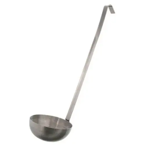 The Update International L-160 - Heavy Duty - 2-Piece Stainless Steel - Ladle - 5.12" x 5.12" x 16.5" is an important item to keep in every restaurant establishment that is used in nearly every part of the dining process from adding liquid ingredients to a saucepan topping an entre with a signature sauce. This Ladle is a sturdy utensil that can easily hold up to a commercial kitchen's daily grind. The ladle bowl is riveted to the handle making it suitable for heavy-duty use.