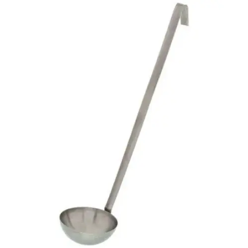 The Update International L-60 - Heavy Duty - 2-Piece Stainless Steel - Ladle - 3.63" x 3.63" x 15" is an important item to keep in every restaurant establishment that is used in nearly every part of the dining process from adding liquid ingredients to a saucepan topping an entre with a signature sauce. This Ladle is a sturdy utensil that can easily hold up to a commercial kitchen's daily grind. The ladle bowl is riveted to the handle making it suitable for heavy-duty use.