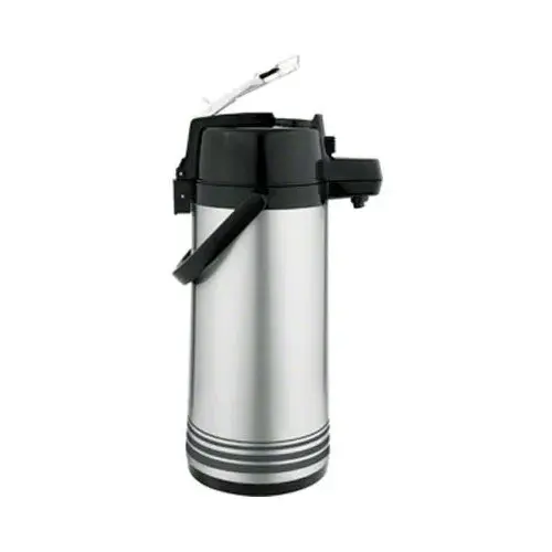 The Update International LSVL-30-BK/SF - Stainless Steel - Lever-Top Airpot Server - 16" x 9.75" x 6.38" is an important item to keep in every restaurant establishment that serves warm coffee, tea and other liquids. This Lever-Top Airpot Server is equipped with a vacuum liner insert. The brushed stainless steel look will add a look of sophistication to your beverage station. Capable of holding 3-liters of fluid.