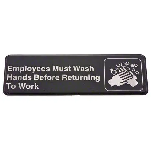 The Update International S39-25BK Sign Board, Employees Must Wash Hands Before Returning to Work, White on Black 9" X 0.06" X 3" is an important item to keep in every restaurant establishment that requires a sign that clearly states the establishment that's cleanliness policy.