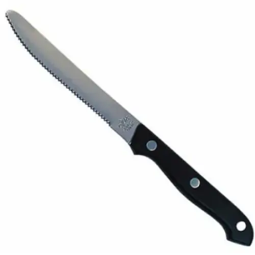 The Update International SK-622P Stainless Steel Full Tang Steak Knife with Bakelite Plastic Handle 10" X 1.63" X 2.5" is an important item to keep in every restaurant establishment that needs to cut through even the toughest of meat. This Steak Knife heavy duty blades that are serrated with a rounded tip.