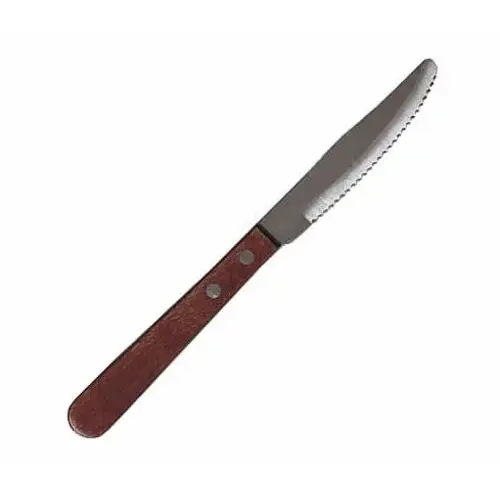 The Update International SK-741 Stainless Steel Steak Knife with Pakka Wood Handle 9" X 1.5" X 1.88" is an important item to keep in every restaurant establishment that needs to cut through even the toughest of meat. This Steak Knife heavy duty blades that are serrated with a rounded tip.