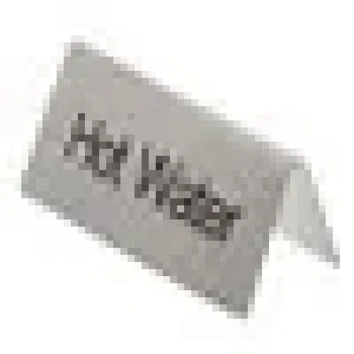The Update International TS-HWT "Hot Water" Tent Sign 3" X 0.25" X 1.5" is an important item to keep in every restaurant establishment that needs to put hot water signs on tabletops. This Tent sign is made of stainless steel.